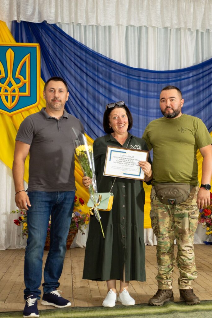 – Захід урочистий, присвячений до дня знань. Сьогодні пішли діти в школу. Ми переживаємо зараз нелегкі часи, війна в нашій державі. І дуже важливо було з ними сьогодні побути, підтримати їх, слава богу, що не було обстрілів, захід вдався все в порядку, а також були роздані сертифікати дітям по 10,000 грн. Це шість обдарованих дітей від 10 до 14 років, які намалювали картини. На благодійному аукціоні з військовими 110-ї бригади були реалізовані, частково гроші пішли на збройні сили, тобто на 110 бригаду, а частково пішли дітям по 10000 грн, а також їхнім школам по 3000. Загалом було десь зібрано на цих картинах 400 000 грн і ці кошти були розподілені пропорційно між військовими та дітьми, їхніми школами. Обов’язково будемо подалі продовжувати уже нашу традицію, можна сказати започатковану мною, це організація конкурсу, проведення його, оцінка його. Знайти майданчик для тих людей, для власників, які зможуть підтримати самих дітей. У нас багато переселенців, дітей дуже обдарованих, і кошти, які будуть збиратися, це теж часткова для них допомога. Тому в подальшому будемо планувати, і діти в цьому віці – це наше майбутнє, і ми будемо систематично підтримувати їх і особливо переселенців.