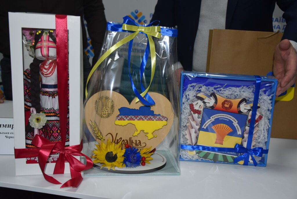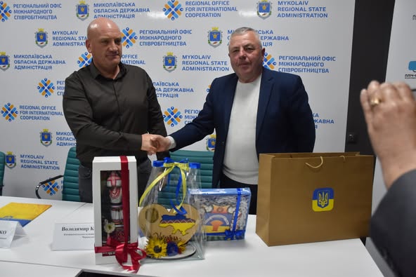 На знак поваги та закріплення співпраці Володимир Коваленко передав вироби декоративно-ужиткового мистецтва, виготовлені майстринями Калинопільщини, Мар’яні Томин та Андрію Дмитренку. Ця ініціатива є важливим кроком у відновленні постраждалих територій і зміцненні зв’язків між українськими громадами.