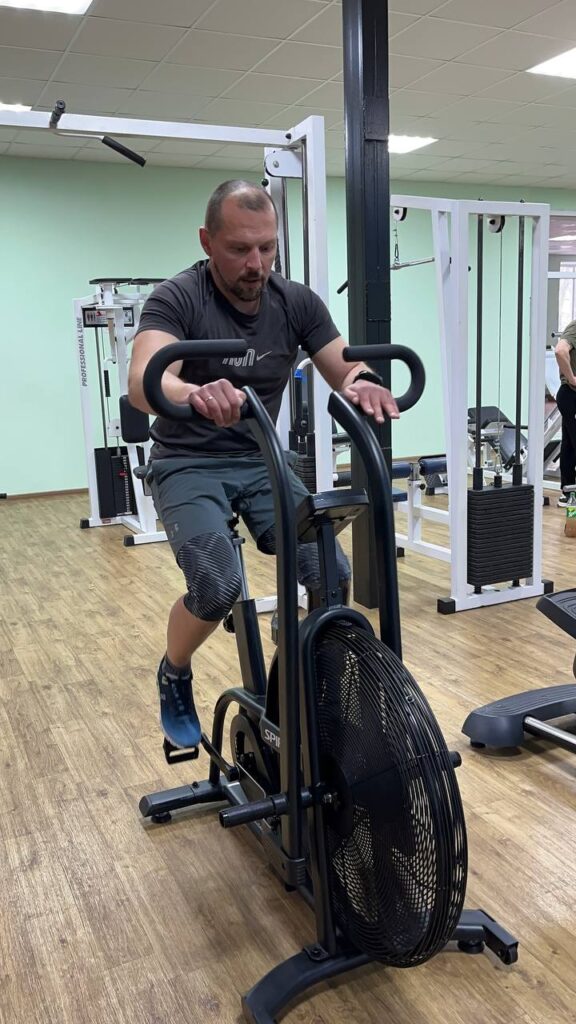 – Починав з легенького: рухи, вправи по диханню. А зараз потихеньку вже на тренажерах. Тренажер, який імітує ходьбу, та і ноги включаються потихеньку. В мене поранення голови, то в мене нога і голова, з головою конект, так, як можна сказати, дає. То, зараз уже потихеньку, хоч, нога зв’язується із головою, так.
