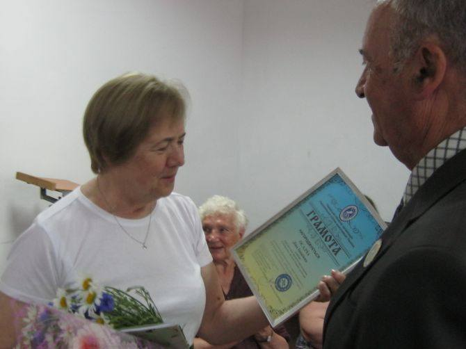 У Смілі відбулося урочисте вручення почесної грамоти Діні Осадчій, керівниці народного аматорського хору ветеранів міського Будинку культури.